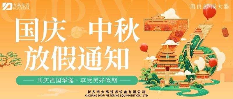 尊敬的客戶及合作伙伴:秋風送爽,丹桂飄香。值此國慶與中秋雙節(jié)來臨之際,謹向您及家人致以zui誠摯的節(jié)日祝福!根據國家法定節(jié)假日安排,結合公司實際情況,現(xiàn)將2025年國慶+中秋雙節(jié)放假安排及相關事項通知如下:一、放假時間2025年10月1日(星期三)至10月6日(星期一),共計6天。10月7日(星期二)起正常上班。9月28日(周日)、10月12日(周日)補班。二、業(yè)務服務說明放假期間,公司線上咨詢通道保持暢通。銷售人員將不定期查看并回復您的咨詢,但受假期影響,可能存在回復延遲的情況,敬請諒解。如遇緊急事項,您可撥打以下熱線:王經理13613905650;李經理13839073363,我們將竭誠為您服務。三、生產安排提醒因車間節(jié)前生產訂單已排滿,為確保假期前后生產質量與效率,放假期間(10月1日至10月6日)將暫停安排新生產訂單生產。節(jié)前已下單的訂單將按原計劃正常推進,放假期間新接訂單將統(tǒng)一順延至10月7日復工后,按序安排生產。由此帶來的不便,我們深表歉意,感謝您的理解與支持。四、溫馨提示假期出行請注意安全,做好個人防護。公司官網及社交媒體平臺將持續(xù)更新節(jié)日動態(tài)及服務資訊,歡迎隨時關注。佳節(jié)共團圓,服務不間斷。值此雙節(jié)同慶的美好時刻,衷心感謝您長期以來對我司的信任與支持!我們期待在節(jié)后以更飽滿的熱情、更優(yōu).質的服務與您攜手同行,共啟新程!此致敬禮!新鄉(xiāng)市大禹過濾設備有限公司2025年9月28日